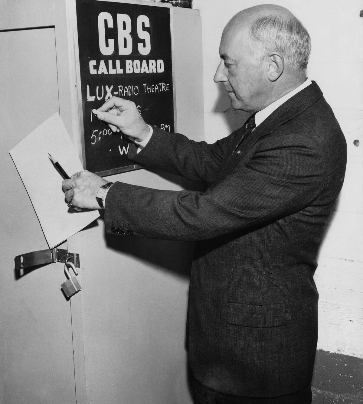 This image of director Cecil DeMille illustrates the changing face of media. While he was best known for directing films, he’s actually taking part in a CBS radio drama in this image.