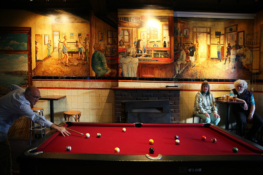 Call it whatever you want, billiards or pool was first developed in the 1500s. Initially, it was played outdoors as a lawn game that was somewhat similar to croquet. Eventually, the game was moved indoors and played on a wooden table. The green cloth is meant to simulate grass.