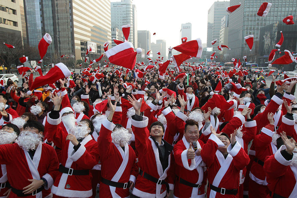 Koreans have adopted a lot of Western Christmas traditions. People like to exchange money rather than gifts on Christmas, and Santa Claus can be seen on the streets wearing red or blue. In Korean, he’s known as Santa Kullosu, or Santa’s grandfather.