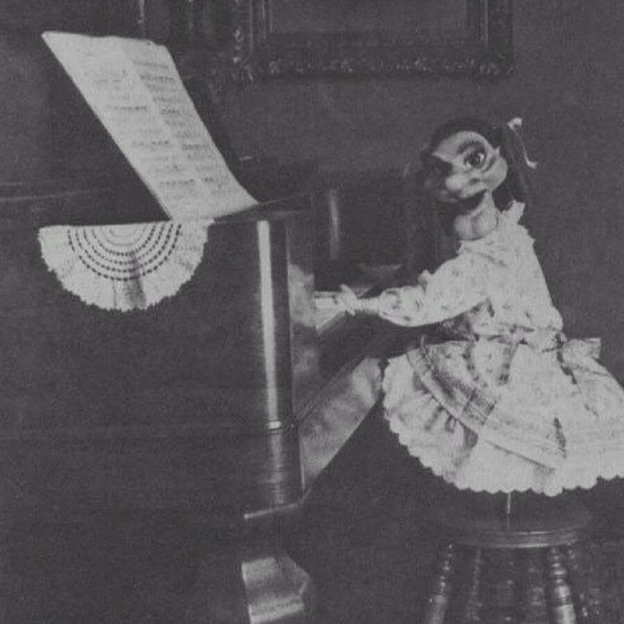 Is it just me, or have all these photos proven that humans have always had a sick and twisted sense of humor? Someone actually spent the time and money to pose as a doll with a terrifying mask up at a piano and take a photo of it. And they did all this when pictures were a rarity.