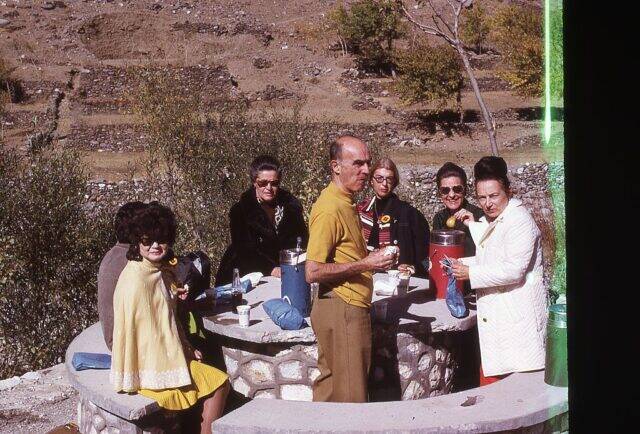 While out and about on a sunny day, these tourists from the Western hemisphere stopped for a picnic in the mountains outside of Kabul, Afghanistan, circa 1973.